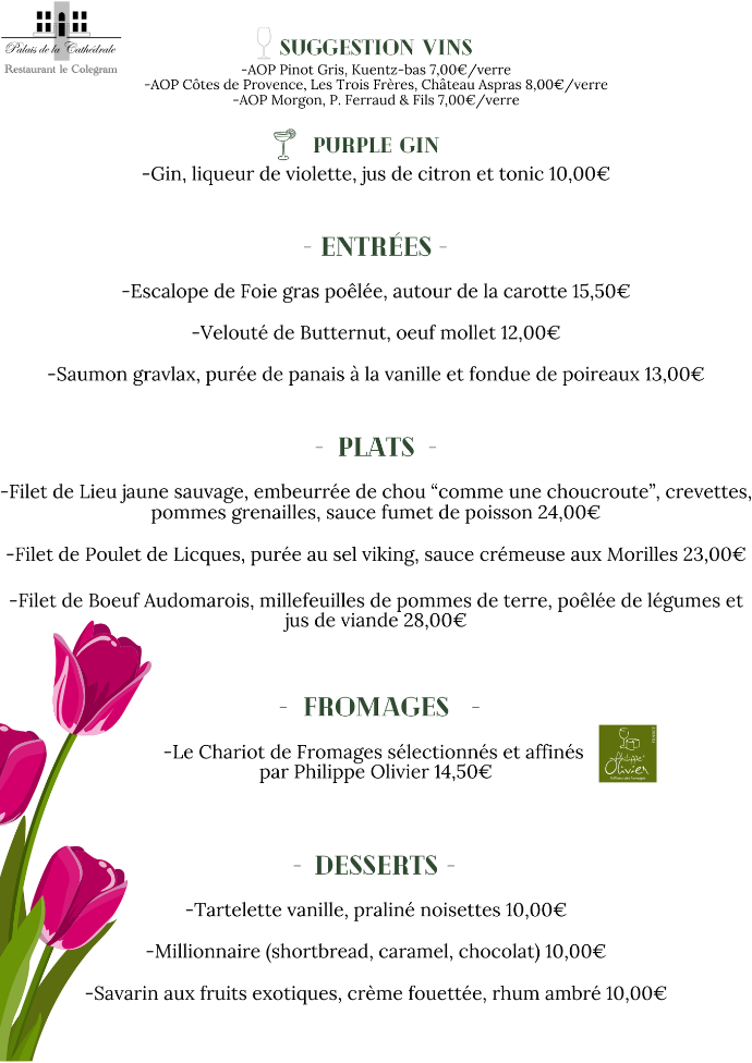 Notre établissement étant situé dans un lieu historique aux parquets fragiles, nous remercions les maîtres de veiller à leur compagnon, dans le respect des lieux, des autres convives et de la sérénité du service. Les maitres restent responsables de tout dommage éventuel.